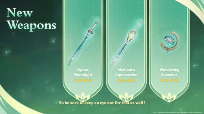 5-তারকা অস্ত্র ছাড়াও রয়েছে তিনটি 4-তারকা অস্ত্র জেনশিন ইমপ্যাক্ট 3 এ এপিটোম ইনভোকেশন পুলে যুক্ত করা হচ্ছে.1 আপডেট. 3 এ নতুন 4-তারা অস্ত্র.1 হ’ল: