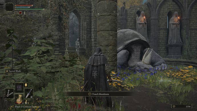 আপনি লিমগ্রাভের মারিকার তৃতীয় চার্চের ঠিক উত্তরে একটি ছায়াযুক্ত অঞ্চলে একটি টেলিপোর্টার ব্যবহার করতে পারেন (উপরের মানচিত্রে নীল বর্ণিত স্পট). এটি একই গির্জা যেখানে আপনি আশ্চর্যজনক ফিজিকের ফ্লাস্কটি খুঁজে পান. ডিভাইসটি আপনাকে অন্যথায় খুব বিপজ্জনক, উচ্চ-স্তরের অঞ্চলে সরাসরি পশুপাখি অভয়ারণ্যে প্রেরণ করবে. এখানে আপনি গুরানককে ডেথরুট দিতে চান. আপনি যখন তাকে দ্বিতীয় ডেথরুট দেওয়ার সময় তিনি পশুপালনের স্লিংকে হস্তান্তর করার আগে আপনি একটি বিস্ট মার্ক সিল পাবেন যা বিস্টিয়াল ইনজেন্টকে শক্তিশালী করে. এটির জন্য 10 টি বিশ্বাস প্রয়োজন এবং কেবল 7 এফপি ব্যবহার করে. রক স্লিংয়ের বিপরীতে, পশুপাল স্লিং নিকট-পরিসীমা লড়াইয়ে ভাল কাজ করে এবং কাস্ট করতে কম সময় নেয়.